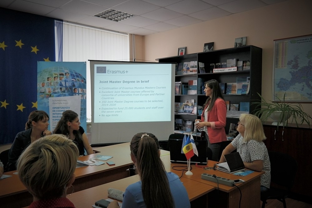 Oficiul Național Erasmus+ Moldova a început seria de întâlniri cu studenții în cadrul campaniei naționale “Information Day”. Echipa Oficiului Erasmus+ a mers, pe 17 septembrie, la Comrat și Cahul, pentru a le vorbi tinerilor despre oportunitățile de studii oferite de Programul Uniunii Europene pentru Educație, Formare, Tineret și Sport 2014-2020. Aproximativ 150 de studenți au aflat, în acest fel, cum pot beneficia de posibilitățile de studii oferite de program.