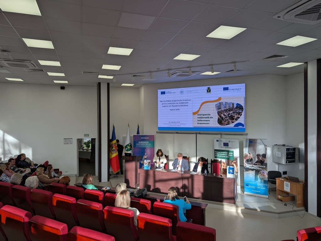 În lumina acestei lansări, Oficiul Național Erasmus+ în Moldova, în cooperare cu Delegația Uniunii Europene în Republica Moldova și Ministerul Educației și Cercetării, au organizat la 26 noiembrie, în incinta Universității de Stat din Moldova, Sesiunea de informare privind oportunitățile Erasmus+ pentru învățământul superior.