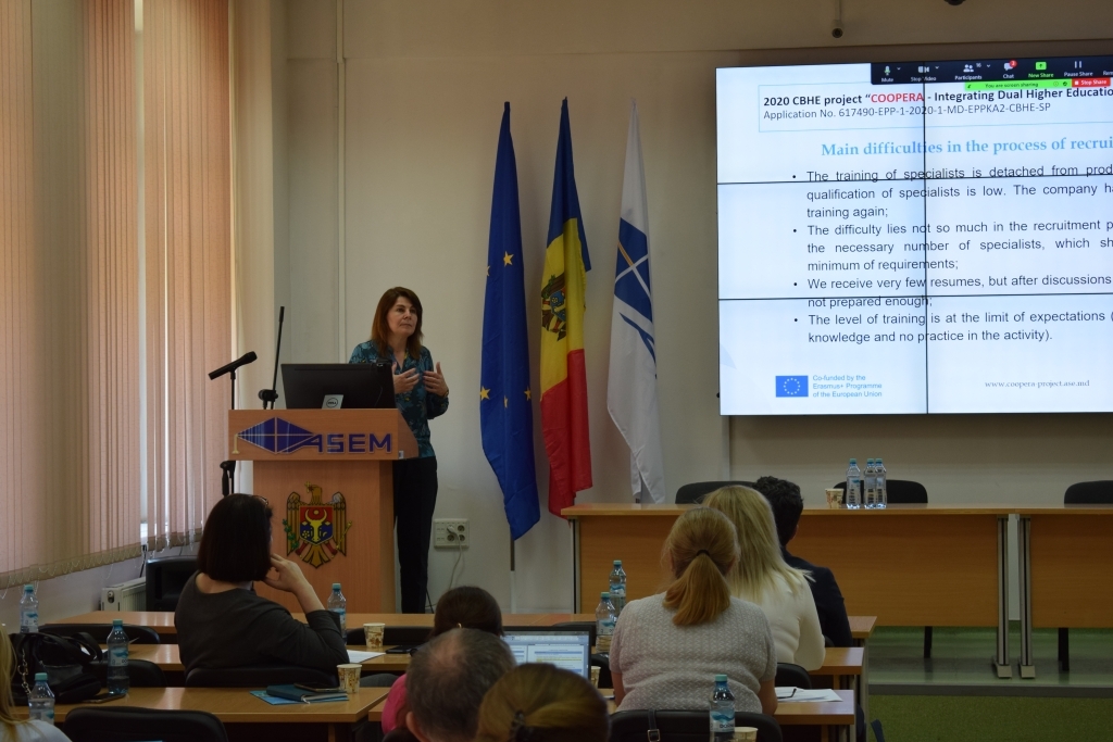 About 40 participants were present at the event, including the program officer of the EU Delegation to the Republic of Moldova - Giuseppe Paglione, the general secretary of the Ministry of Education and Research - Nadejda Velisco, but also representatives of the five higher education institutions participating in COOPERA projects and WBL4JOB (Academy of Economic Studies of Moldova, Technical University of Moldova, Free International University of Moldova, “Alecu Russo” State University of Balti and Cooperative-Commercial University of Moldova).
